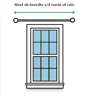 Wat is de gewenste breedtemaat van de gordijnrails?